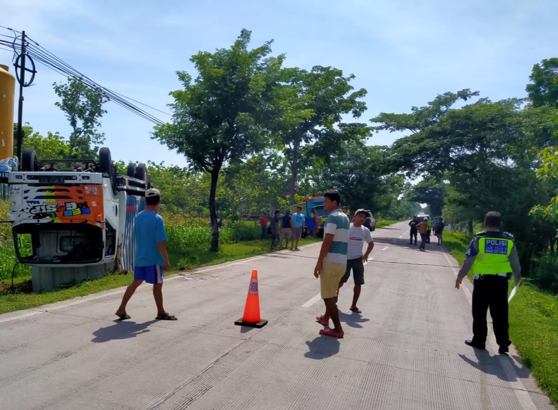 GROBOGANTODAY.COM - Kecelakaan lalu lintas tunggal terjadi di Jalan Kuwu-Sulursari, tepatnya di Desa Pandanharum, Kecamatan Gabus, Kabupaten Grobogan, Jum’at(6/11/2020) sekitar pukul 06.00 WIB. Sebuah truk box terguling di bahu jalan. Tidak ada korban jiwa dalam kecelakaan tunggal ini. Sopir hanya mengalami luka ringan.